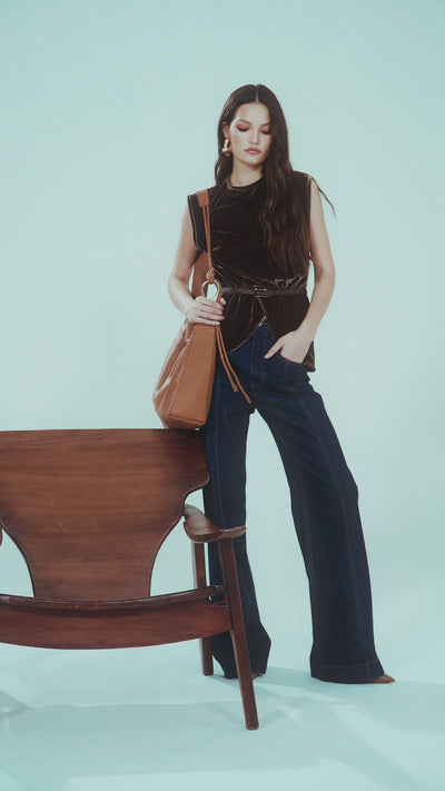 A blusa regata em veludo da Undertop é uma peça sofisticada que une textura elegante e design funcional. Com gola careca, comprimento regular e cintura levemente marcada por elástico interno, ela valoriza a silhueta com conforto e elegância. O cinto removível em couro com fivela metalizada permite diferentes formas de styling, tornando a peça versátil para produções que transitam do dia para a noite.