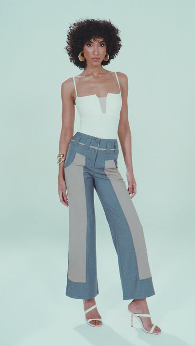 Body manga curta confeccionado em tule com recortes embutidos e transparência. Gola careca. Bumbum retrô. Fechamento no fundilho.