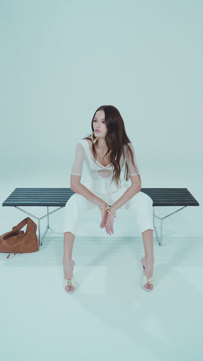 Body manga curta, confeccionado em tule com recortes transparentes. Decote V. Costas vazadas. Bumbum retrô. Fechamento no fundilho.